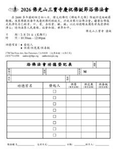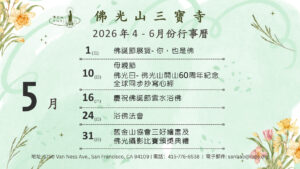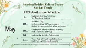 為慶祝佛誕,彰顯佛陀作為大醫王的慈悲精神,並實踐佛光山開山祖師星雲大師所倡導的「以慈善福利社會」宗旨,國際佛光會舊金山協會與泉源基金會再度攜手,於5月24、25日連續兩天在佛立門文教中心舉辦健康義診,為民眾的健康提供全面醫療服務,共嘉惠100多位大眾。